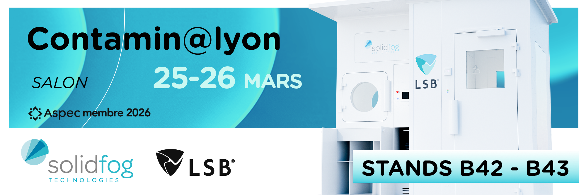 - Solidfog Technologies développe des solutions de biodécontamination par VH₂O₂ (DSVA) à haute performance (log 6) pour les environnements critiques. Ses systèmes mobiles ou intégrés assurent des cycles fiables, traçables et validables, répondant aux exigences des secteurs pharma, biotech, hospitalier et des laboratoires (salles propres, sas de transfert, isolateurs, RABS, PSM).